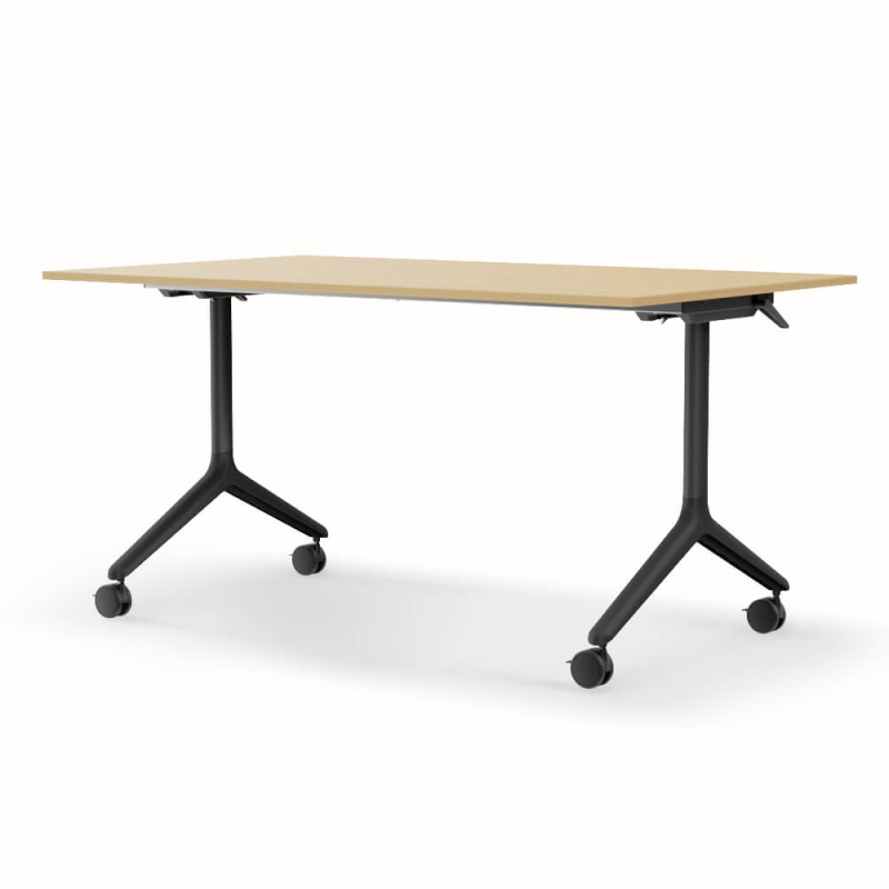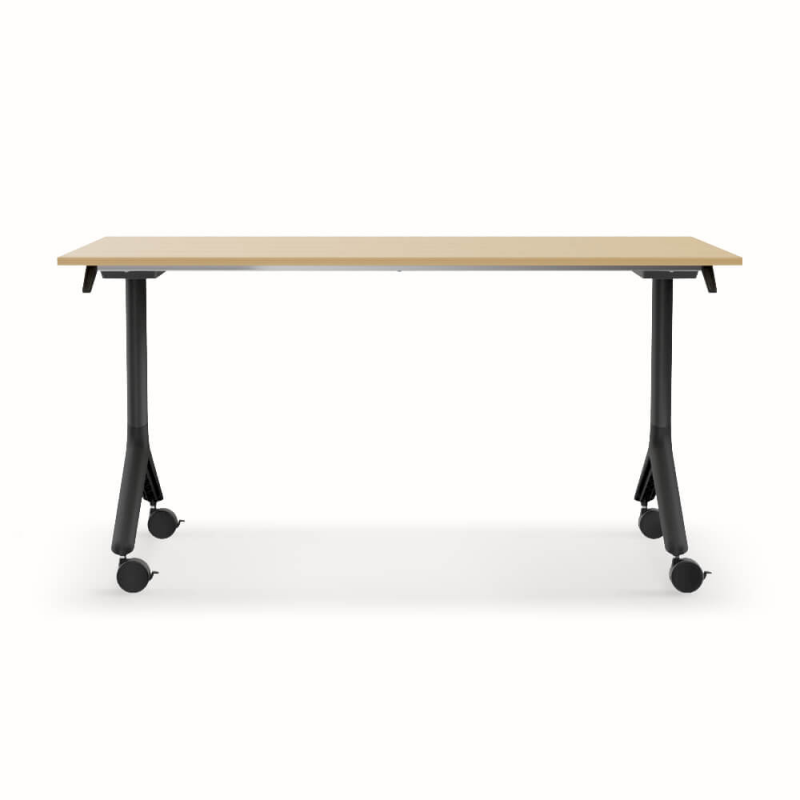 Díky inovativnímu, patentovanému mechanismu naklápění horní desky je možné stůl snadno složit či rozložit během několika sekund – a to pouze jednou osobou. Kolečka s brzdou a stabilní kovové nohy umožňují bezproblémovou manipulaci i skladování více stolů najednou.