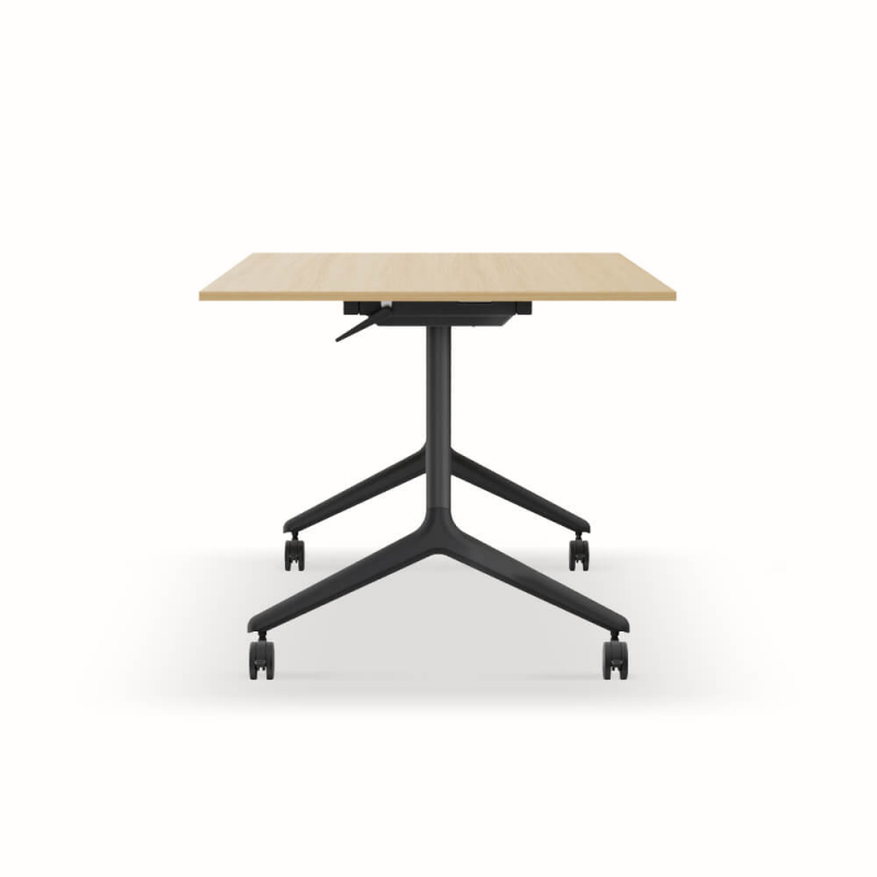 Díky inovativnímu, patentovanému mechanismu naklápění horní desky je možné stůl snadno složit či rozložit během několika sekund – a to pouze jednou osobou. Kolečka s brzdou a stabilní kovové nohy umožňují bezproblémovou manipulaci i skladování více stolů najednou.