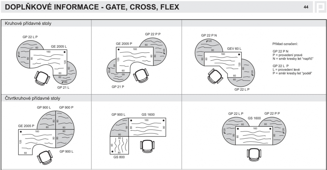 Řada Gate zahrnuje celkem 61 rozšiřitelných stolových prvků.