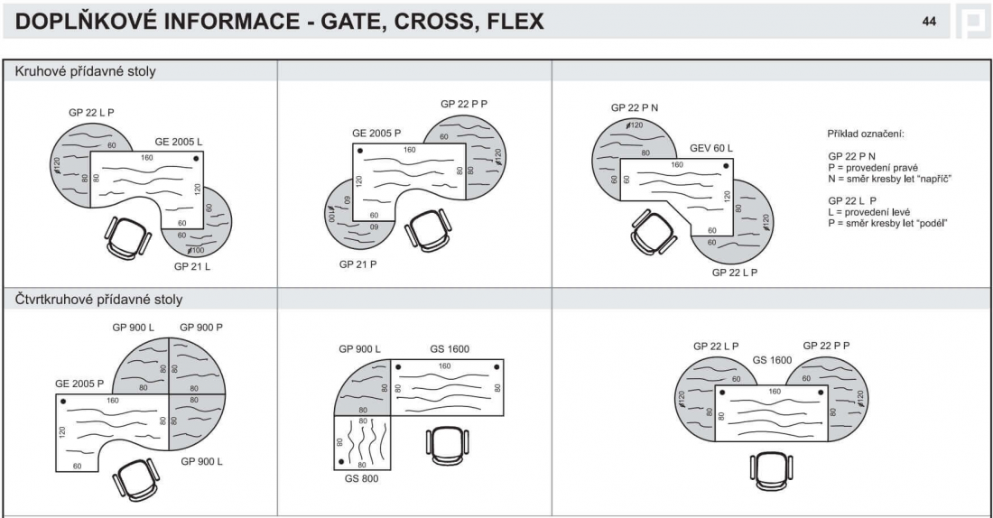 Podnož s plnými bočnicemi a trnoží zaručí dostatek soukromí i ve frekventovanějších prostorách. Tloušťka bočnic a trnože je standardně 18mm. V nabídce jsou stoly rovné, rohové, ergonomické, přídavné a jednací. Řada Gate zahrnuje celkem 106 rozšiřitelných stolových prvků.