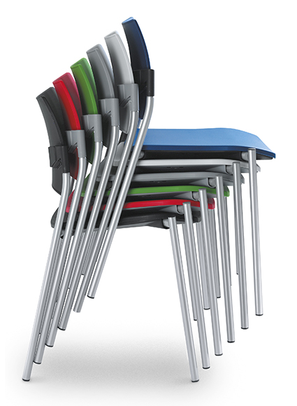 Židle je vertikálně stohovatelná. Je tedy možné skladovat více židlí na sobě ve stohu a využít tak prostor nejen k jiným činnostem, ale třeba i k úklidu.