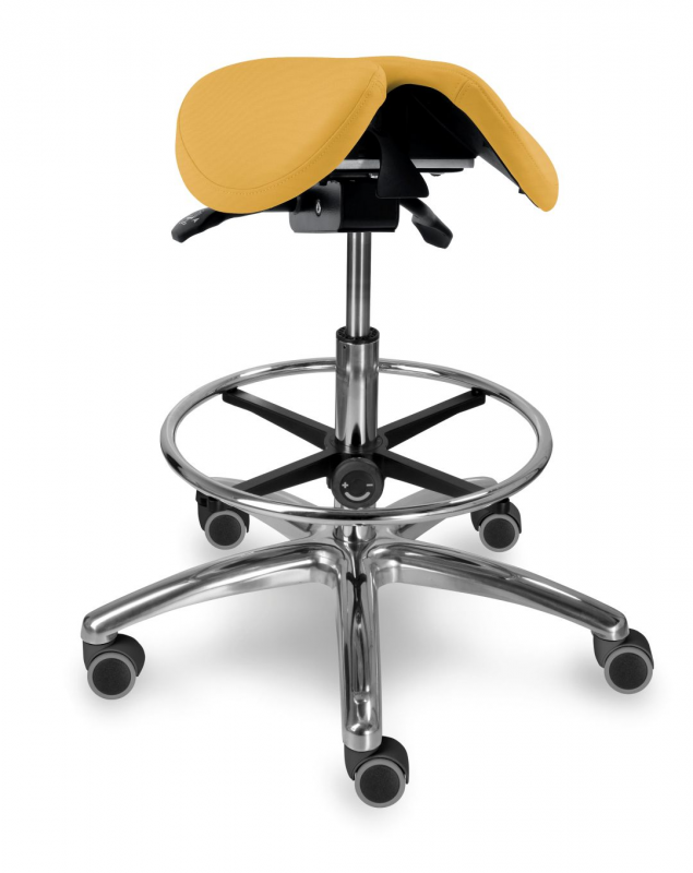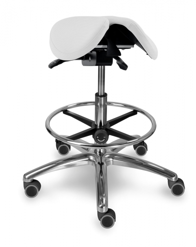 Unikátní sedlová stolička s děleným sedákem Medi 1214 S dent od českého výrobce Mayer je navržena pro maximální ergonomický komfort při dlouhodobé práci v ordinacích, laboratořích, školních učebnách i jiných odborných provozech.