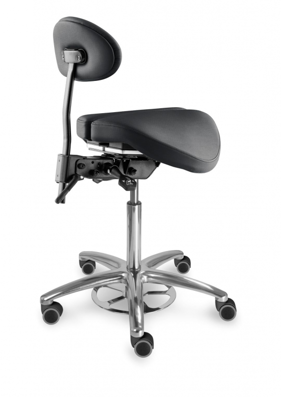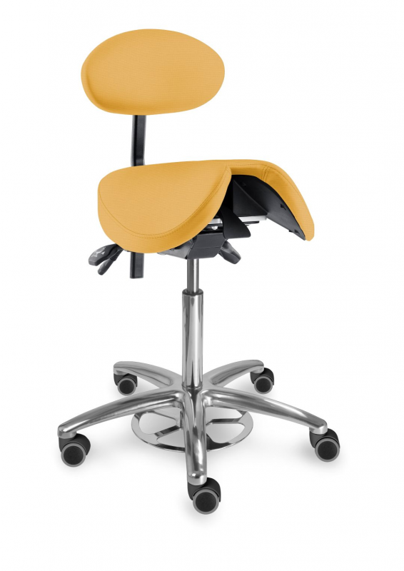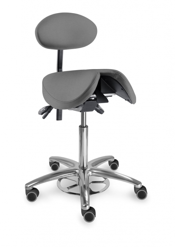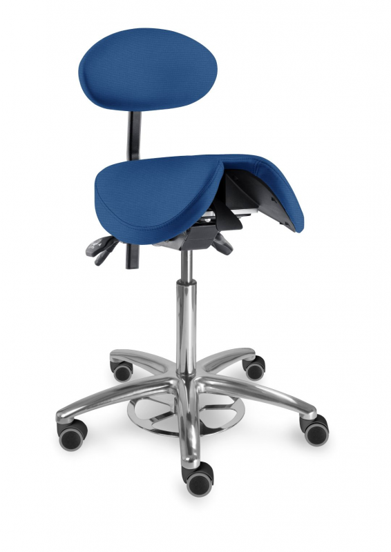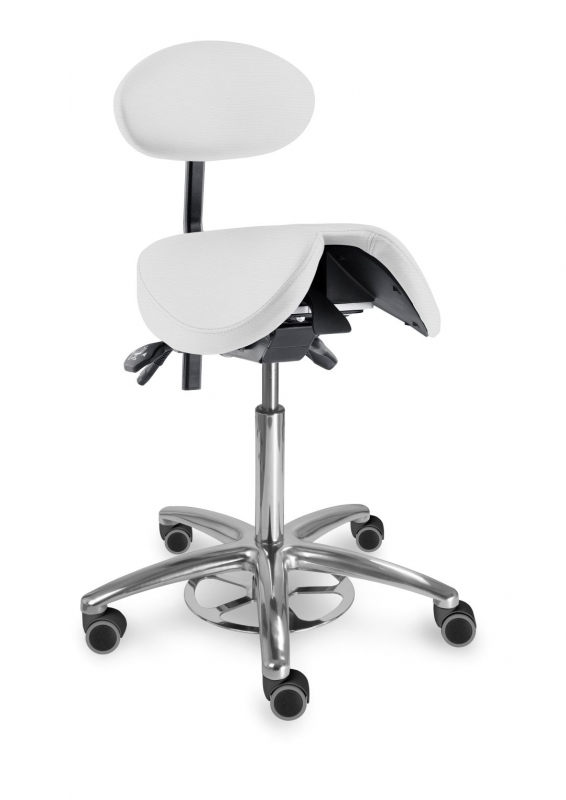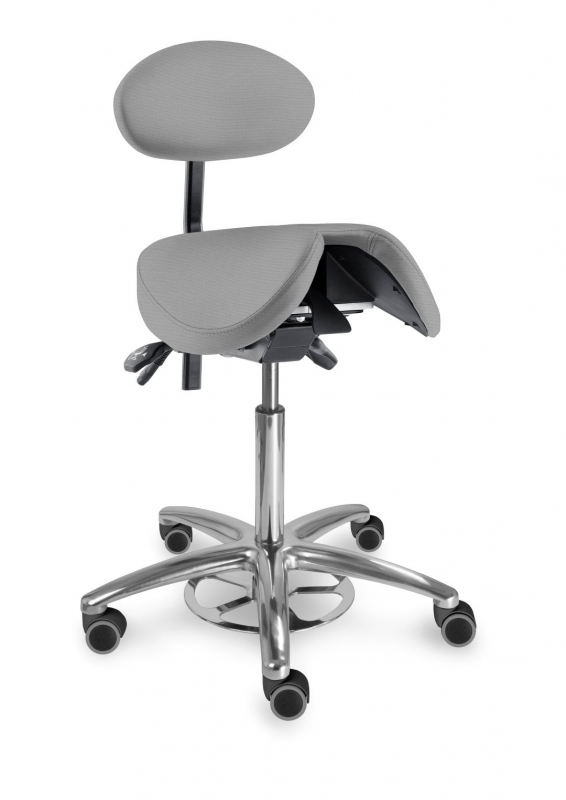 Unikátní sedlová stolička s děleným sedákem a opěrkou zad Medi 1215 S clean od českého výrobce Mayer je navržena pro maximální ergonomický komfort při dlouhodobé práci v ordinacích, laboratořích, školních učebnách i jiných odborných provozech.